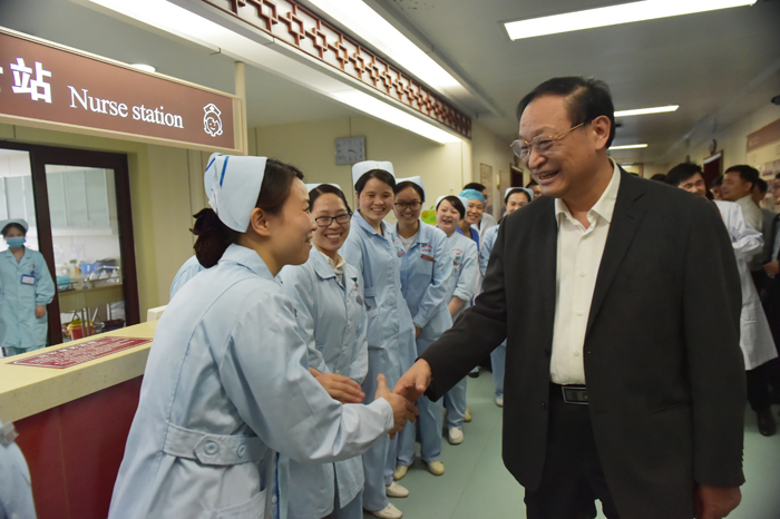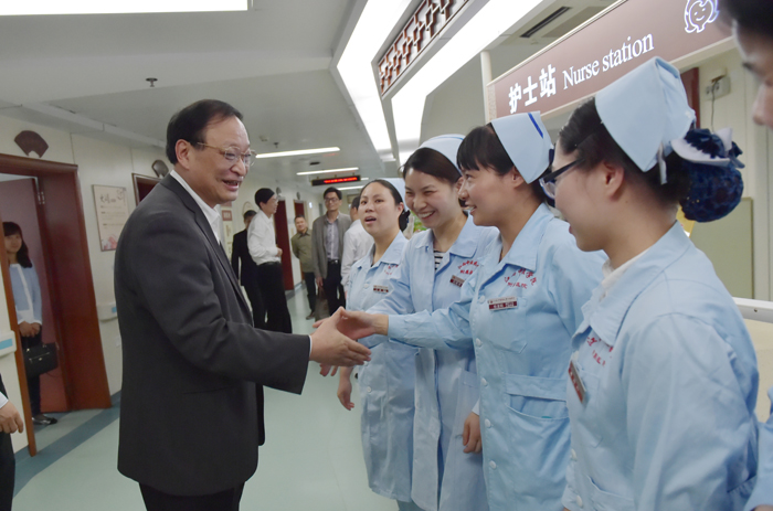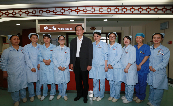 5月8日,國家衛(wèi)生計(jì)生委副主任、國家中醫(yī)藥管理局局長王國強(qiáng)在江西省中醫(yī)院調(diào)研時(shí),慰問了正在值班的護(hù)理人員。王國強(qiáng)說,馬上就要到護(hù)士節(jié)了,在這里,我代表國家衛(wèi)計(jì)委、國家中醫(yī)藥管理局,對(duì)你們表示節(jié)日慰問的祝賀,你們辛苦了。王國強(qiáng)和現(xiàn)場的護(hù)士們一一握手,并熱情地邀請(qǐng)大家合影留念。