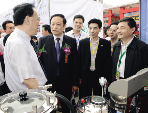 李志堅(左一)、王國強(左二)參觀企業展臺。