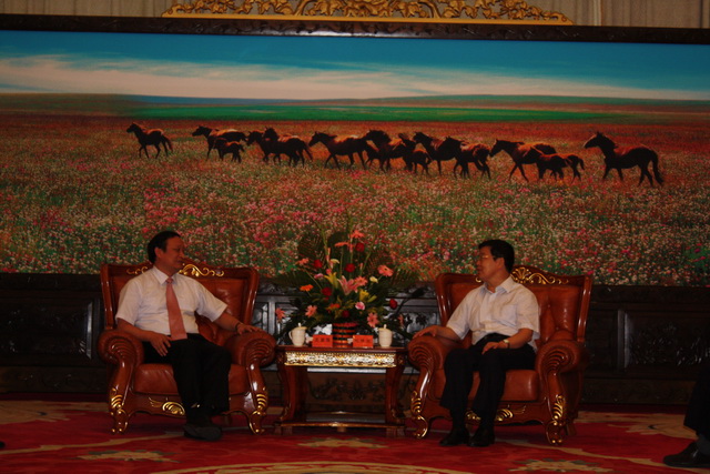 1、王國強(qiáng)副部長與內(nèi)蒙古自治區(qū)主席巴特爾會談
