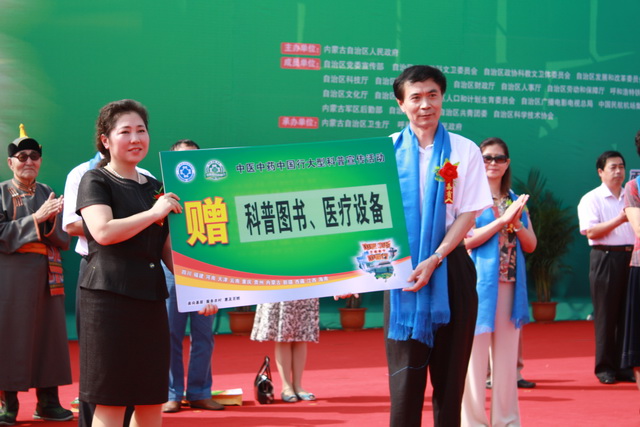5、姜在旸司長代表組委會向內(nèi)蒙古自治區(qū)贈送中醫(yī)藥科普圖書和醫(yī)療設(shè)備