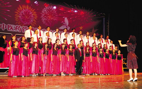 國家中醫藥管理局機關代表隊表演合唱《騰飛吧,中醫藥》。 記者 巨 鋒/攝 在6月10日舉行的國家中醫藥管理局直屬機關職工歌詠比賽中,該局機關的大合唱《騰飛吧,中醫藥》和《祖國不會忘記》以及中國中醫科學" />