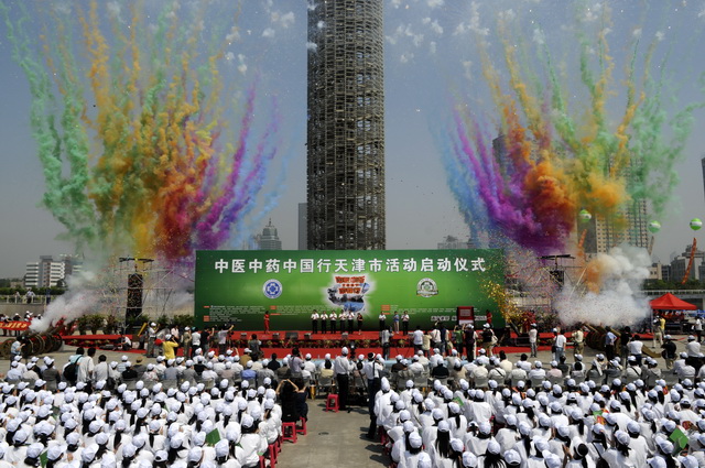 5月23日,天津啟動儀式現場。記者巨鋒攝 5月24日,在天津武清區啟動儀式上王國強等領導為武清區評出的6位中醫名家頒發證書。記者巨鋒攝 5月23日,在天津啟動儀式上,天津中醫藥大學的專家位外國友人把脈看病 " />
