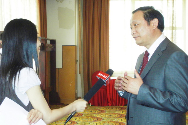 衛生部副部長、國家中醫藥管理局局長王國強接受中央電視臺記者采訪