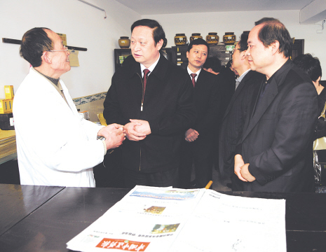 陽春三月,春風和煦。鄧小平故里四川廣安市廣安區協興鎮。 3月29日下午,衛生部副部長、國家中醫藥管理局局長王國強參加“中醫中藥中國行”四川省廣安站活動的啟動儀式后,與國家中醫藥管理局副局長馬建中及四川省有關人員一同,乘車來到距廣安市區6公里的協興鎮牌坊村衛生站看望鄉村中醫王大均。 “妙手施仁術望聞問切,辨證查機因寒熱虛實”,迎著這樣一副對聯,王國強走進鄉村中醫王大均及其兒子王敏工作的牌坊村衛生站。看到64歲的王大均正在專注地給病人開處方,王國強沒有打擾,在他身后駐足。 在牌坊村,王大均是十里八鄉聞名的老中醫,1993年被評為全國優秀鄉村醫生。他和兒子都取得鄉村醫生執業證書,為全村3300多人提供中醫藥服務。 當地衛生局人員介紹王國強時,王大均接過話說:“我早就認識王部長了!在中國中醫藥報上‘見過’好多次了!”王大均的開場白,使氣氛一下子活躍起來。 王大均從中國中醫藥報創刊時訂閱,迄今20年。他按照政策法規、臨床知識等內容分類,剪下來貼在不同的本子上,至今積了厚厚一大摞。不僅自己看,還放在藥柜旁供人閱覽。最近兩周的報紙,則掛在門診部進門的墻上。“中國中醫藥報對我幫助可大了!每一期我都認真看,你們的報紙越辦越好!” 王國強關切地問老人:“行醫多少年了?有什么困難嗎?” 王大均說:“我從衛生站成立就開始給老百姓看病,40多年了。中 醫藥方便、便宜,老百姓信得過。我們希望能有更多的機會參加中醫技能培訓,也能給我們參加職稱考試和評選的機會。” 王國強連連點頭,“目前衛生部正在研究現有的醫師從業資格政策,對于師承和確有一技之長者,將會有相關政策。而且,要增加對他們的中醫理論和技能培訓,考試要側重實際和經驗。” 牌坊村衛生站有300多種中藥材,大部分中藥的炮制加工,都是王大均自己完成。王國強拉開裝滿中藥的藥斗子,一邊看一邊問藥材的質量、產地、炮制等問題,王大均一一回答。裝中藥的柜子上整齊地擺放著一摞本子,這是王大均自2003年以來給病人開的處方。“這都是我的醫案,將來我要認真整理、總結。” 在王國強與王大均談話間,20多平方米的衛生站已經擠滿了人,圍繞中醫治病紛紛發表看法。 “王醫生有中醫絕活,我們都找他看病。” “中藥便宜,也沒啥子副作用,我愿意看中醫!” “腰痛,腿痛,讓老王按摩幾下,就好嘍!”…… 王國強說:“鄉村醫生要像王大均這樣,善于總結行醫經驗。衛生局也要收集鄉村醫生的好經驗和一技之長,在農村推廣,更好地推進中醫藥進農村、進社區、進家庭。”他握著王大均的手,“感謝您幾十年如一日為鄉村老百姓服務,精神可嘉,值得學習!” “這是醫生的職責!”王大均說,“我的孫子、孫女也在跟我學習中醫。”王大均12歲的小孫子王淵,手里拿著一本《藥性歌括四百味》,靦腆地站在爺爺旁邊。 王國強摸著孩子的頭說:“你培養得好啊,以后要讓他們讀大學,讀中醫藥大學,成為名中醫,為老百姓服務。” 隨后,王國強等又調研了協興中心醫院衛生院,并與廣安區部分鄉村中醫進行了座談。在聽取他們對農村中醫藥工作的意見后,王國強表示,國家中醫藥管理局將高度重視和推動解決大家提出的鄉村中醫職稱評定、技能培訓等問題。“衛生和中醫藥工作的重點在農村,與農民幸福安康息息相關。我們要努力做好農村中醫藥工作,充分滿足廣大農民對中醫藥的需求。” (記者 柴玉)
