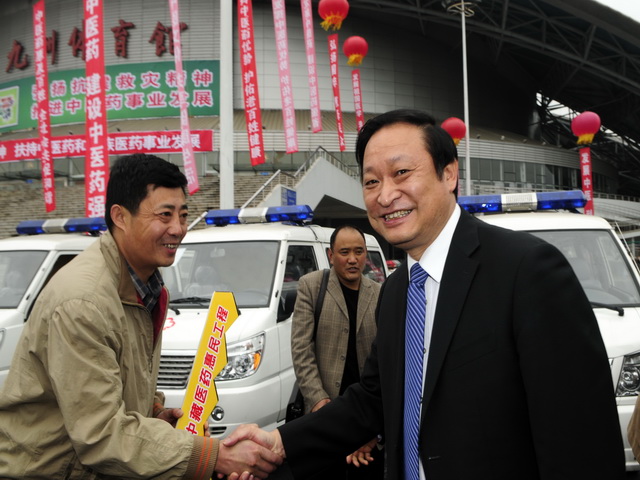 3月28日,王部長向四川省基層中醫院捐贈救護車