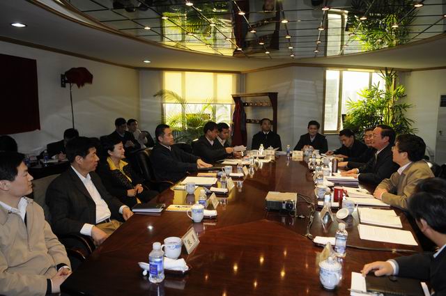 衛(wèi)生部黨組書記張茅同志(左四)聽(tīng)取國(guó)家中醫(yī)藥管理局黨組匯報(bào)并與局領(lǐng)導(dǎo)干部座談