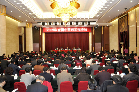 會場 記者巨鋒/攝 2009年全國中醫藥工作會議1月12日在京舉行。衛生部副部長、國家中醫藥管理局局長王國強宣讀了中共中央政治局常委、國務院副總理李克強對此次會議的重要批示。衛生部部長陳竺對中醫藥工作" />