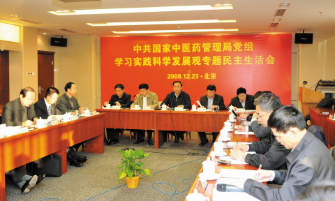 巨鋒攝 2008年12月23日,衛生部副部長、國家中醫藥管理局黨組書記、局長王國強同志主持召開國家中醫藥管理局黨組學習實踐科學發展觀專題民主生活會。國家中醫藥管理局黨組全體成員出席,邀請非中共副局長列席會議" />