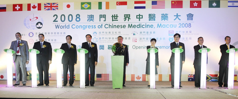 世界中醫藥學會聯合會第五屆世界中醫藥大會10月15日在澳門舉行。澳門特區行政長官何厚鏵,中國衛生部副部長、國家中醫藥管理局局長王國強,中央人民政府駐澳門聯絡辦公室副主任" />