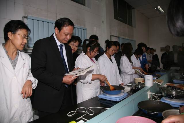 王國強副部長兼局長考察省中醫學校中藥炮制實驗課情況(攝影 喬建安)