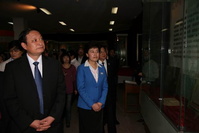 王國強副部長兼局長在咸輝副省長(左二)陪同下,視察甘肅中醫學院醫史館(攝影 喬建安)