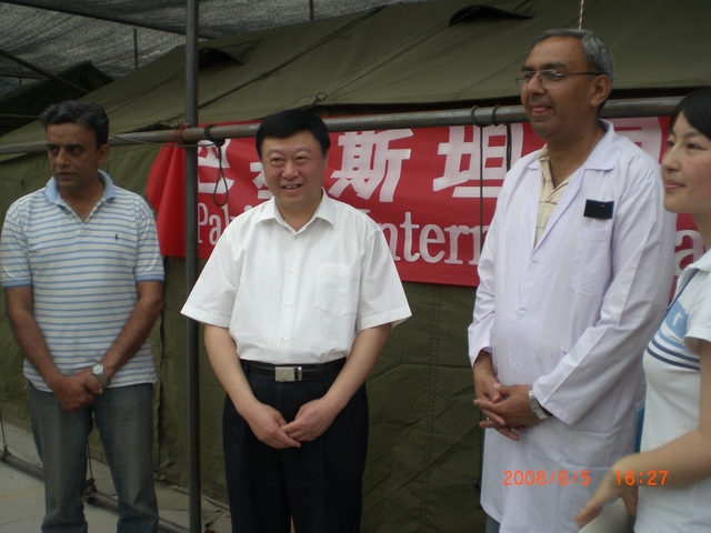 6月5日,吳剛副局長(zhǎng)看望支援隴南抗震救災(zāi)的巴基斯坦醫(yī)療隊(duì)成員