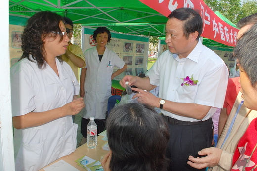 王國強副部長在中醫中藥中國行遼寧省沈陽站活動現場與義診專家親切交談