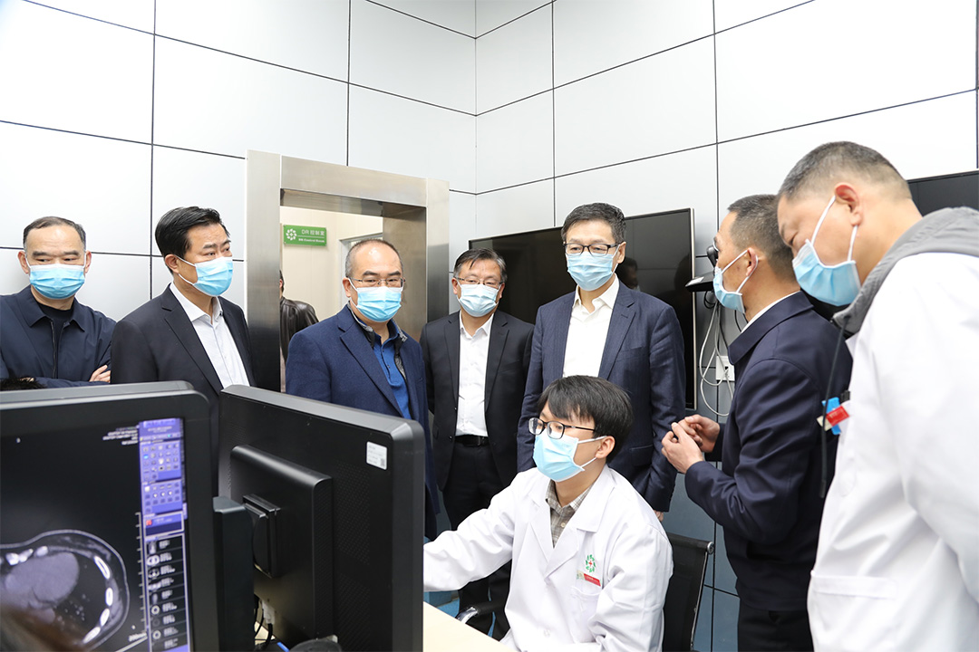 開(kāi)幕式后,孫達(dá)一行到江夏區(qū)中醫(yī)醫(yī)院新院建設(shè)工地、江夏區(qū)中醫(yī)醫(yī)院老院區(qū)和江夏區(qū)大花山方艙醫(yī)院調(diào)研,參觀了江夏區(qū)遠(yuǎn)程影像中心,與參與武漢抗疫的中醫(yī)藥工作者重溫戰(zhàn)疫歷程,就做好中醫(yī)藥守正創(chuàng)新、傳承發(fā)展工作,促進(jìn)傳統(tǒng)中醫(yī)藥發(fā)揚(yáng)光大進(jìn)行了深入交流。