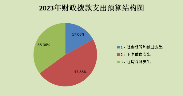2023年收支總預算3592.94萬元。收入包括:一般公共預算撥款收入、事業收入、其他收入;支出包括:社會保障和就業支出、衛生健康支出、住房保障支出。