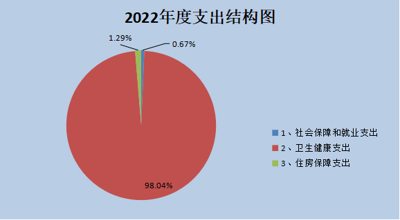 社會保障和就業(yè)支出25.29萬元,占0.67%,衛(wèi)生健康支出3714.32萬元,占98.04%,住房保障支出48.97萬元,占1.29%。
