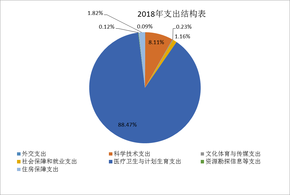 (1)外交支出(類)963.79萬元,主要用于繳納相關國際組織會費、國際組織捐贈等,比2017年決算數增加182.42萬元,增長23.35%,主要是2018年安排瀾滄江-湄公河傳統醫藥人才交流與傳統醫療技術調查研究項目,2017年無此項目。