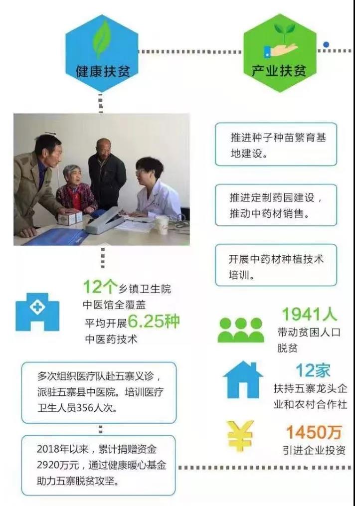 自1994年8月確定幫扶關系,國家中醫藥管理局通過健康扶貧、產業扶貧等方式,使五寨縣12個鄉鎮衛生院實現中醫館全覆蓋,平均開展6.25種中醫藥技術,扶持12家五寨龍頭企業和農村合作社,引進企業投資1450萬元。截至2019年6月底,五寨縣已出列貧困村157個,已脫貧戶數近1.4萬戶,脫貧人口3.2萬余人。