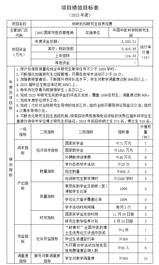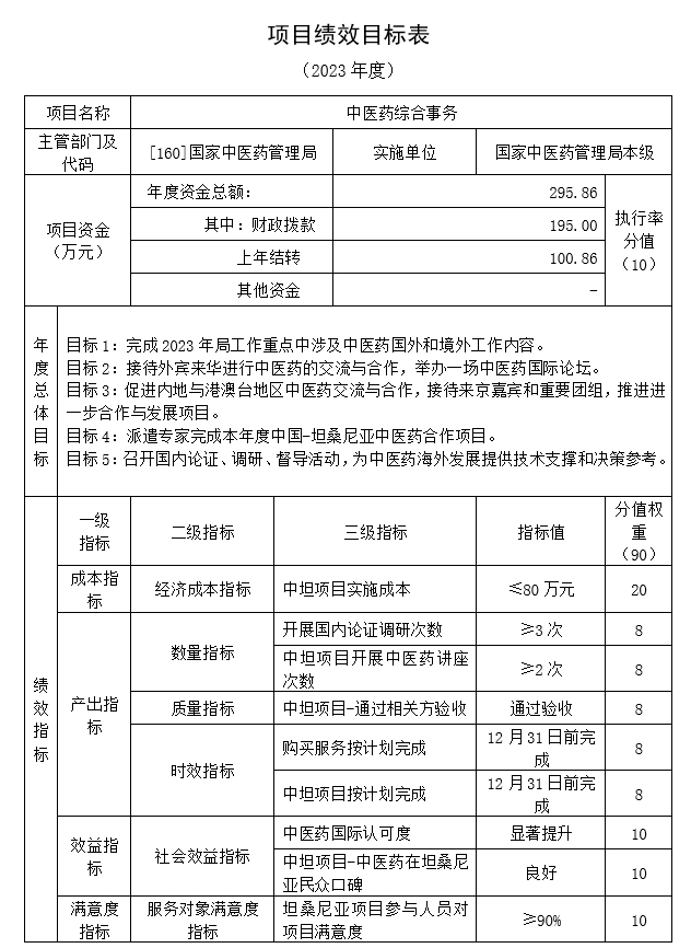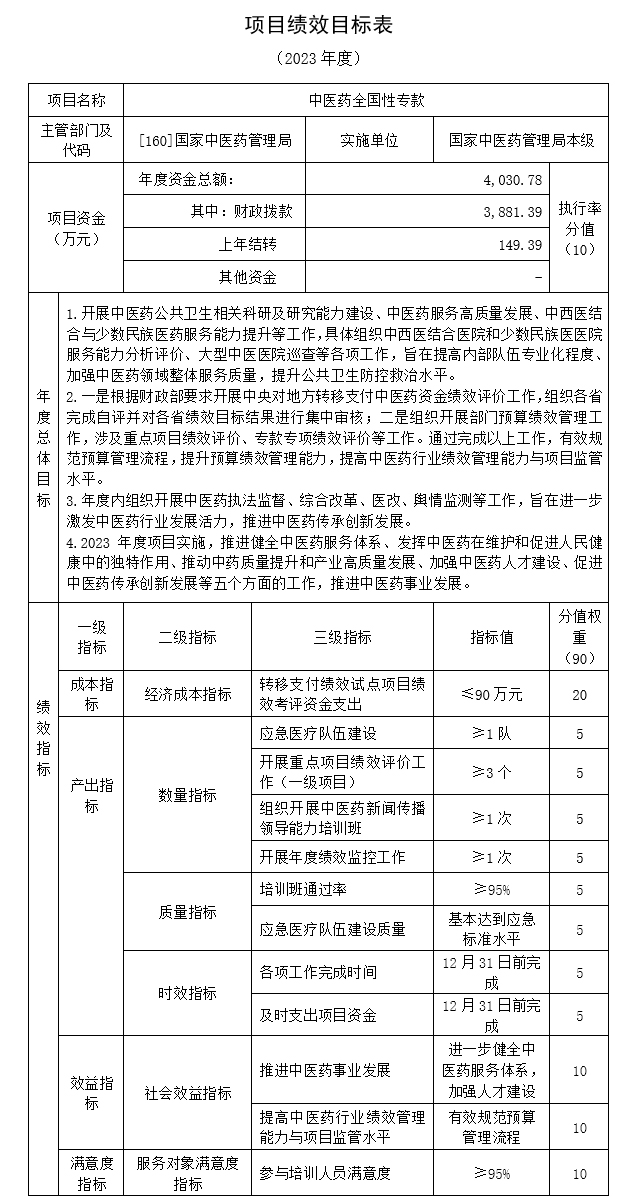 2023年對國家中醫藥管理局項目支出全面實施績效目標管理,涉及預算撥款142396.97萬元,其中,涉及一般公共預算撥款141696.97萬元、國有資本經營預算撥款700萬元。根據以前年度績效評價結果,優化中央所屬(管)醫院服務能力建設等項目支出2023年預算安排,并進一步改進管理、完善政策。