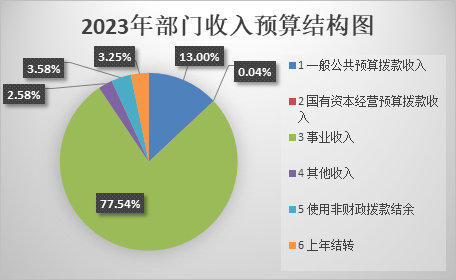 2023年收入預算1631394.92萬元,其中:一般公共預算撥款收入212071.22萬元,占13.00%;國有資本經營預算撥款收入700萬元,占0.04%;事業收入1265044.39萬元,占77.54%;其他收入42154.18萬元,占2.58%;使用非財政撥款結余58457.68萬元,占3.58%;上年結轉52967.45萬元,占3.25%。
