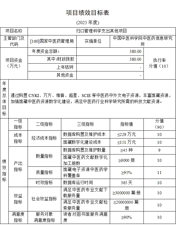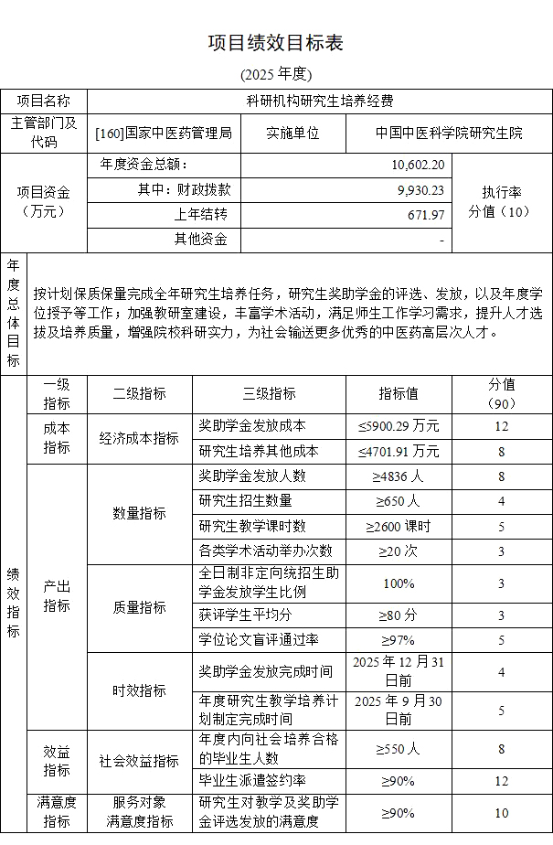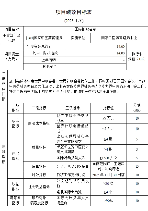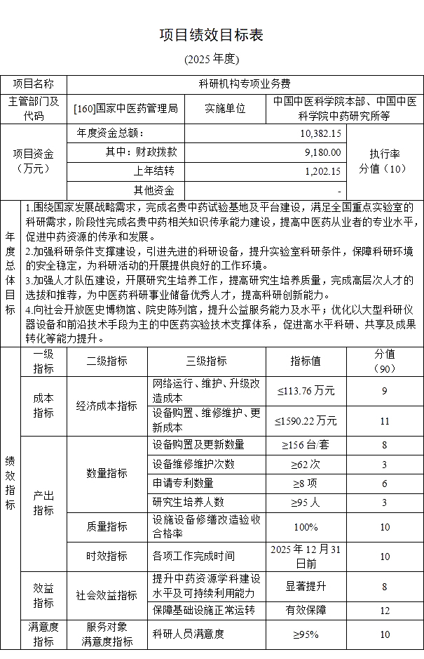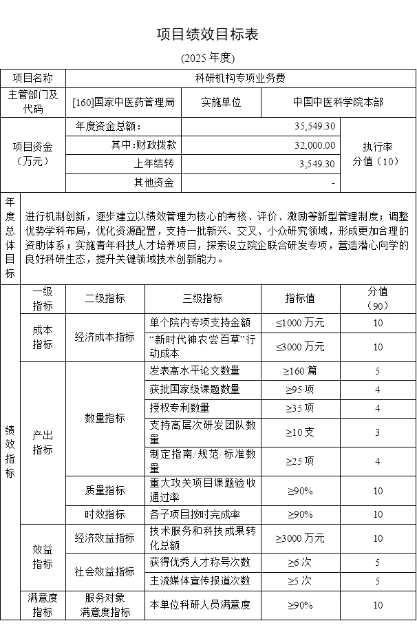 2025年對(duì)國(guó)家中醫(yī)藥管理局項(xiàng)目支出全面實(shí)施績(jī)效目標(biāo)管理,涉及預(yù)算撥款164,023.42萬(wàn)元,其中,涉及一般公共預(yù)算撥款161,623.42萬(wàn)元、國(guó)有資本經(jīng)營(yíng)預(yù)算撥款2,400萬(wàn)元。根據(jù)以前年度績(jī)效評(píng)價(jià)結(jié)果,優(yōu)化中央所屬(管)醫(yī)院服務(wù)能力建設(shè)等項(xiàng)目支出2025年預(yù)算安排,并進(jìn)一步改進(jìn)管理、完善政策。