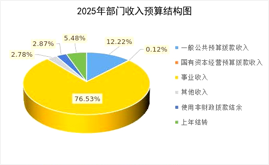 2025年收入預(yù)算1,938,938.63萬(wàn)元,其中:一般公共預(yù)算撥款收入236,867.81萬(wàn)元,占12.22%;國(guó)有資本經(jīng)營(yíng)預(yù)算撥款收入2,400萬(wàn)元,占0.12%;事業(yè)收入1,483,962.6萬(wàn)元,占76.53%;其他收入53,890.72萬(wàn)元,占2.78%;使用非財(cái)政撥款結(jié)余55,674.07萬(wàn)元,占2.87%;上年結(jié)轉(zhuǎn)106,143.43萬(wàn)元,占5.48%。