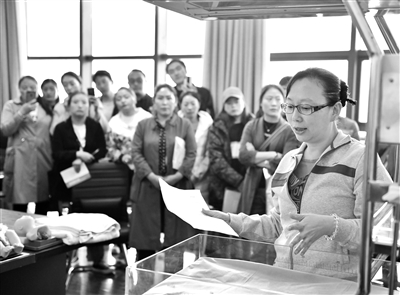 北京兒童醫院醫生齊宇潔為當地醫生講解新生兒急救知識。