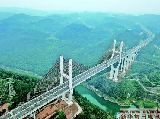 貴州省交通運(yùn)輸廳總工程師潘海說,目前貴州公路橋梁有2.1萬座,梁橋、拱橋、懸索橋、斜拉橋等所有橋梁類型都有并屢創(chuàng)世界紀(jì)錄,是名副其實(shí)的“橋梁博物館”。