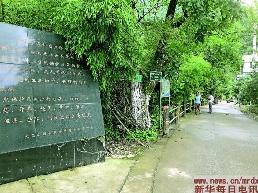 大巴山國家級自然保護區(qū)內(nèi)外,民眾過著兩種不同的生活。圖為保護區(qū)界碑。本報記者周文沖攝