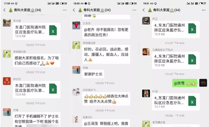 1月25日中午,醫院骨傷科五區張國忠主任接到醫院緊急“組建通州區應急醫療隊(第二梯隊)”備戰的通知。他第一時間報名,隨后醫護人員用接力的方式將報名延續。