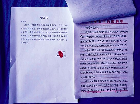 然而,病床上的寧銀河,職責不倒、精神不倒、意志不倒!她毅然地拿起紙筆,一邊以“黨和人民的利益高于一切”的政治覺悟,鄭重地寫出了爭取火線入黨的入黨申請書;一邊以中西醫(yī)結(jié)合治療嬰幼兒肺部及呼吸道感染的技術(shù)專長,鄭重地寫出了爭取第一序列支援武漢的請戰(zhàn)書。她明白,一份入黨申請書和一份請戰(zhàn)書的疊加,是自己醫(yī)者初心的義無反顧,是自己仁術(shù)擔當?shù)牧x不容辭,更是自己赴湯蹈火的無怨無悔……
