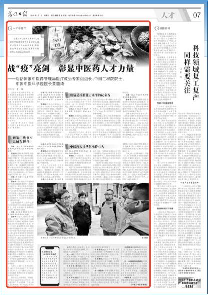 黃璐琦:從實戰(zhàn)來看,一線醫(yī)療隊員們的醫(yī)療知識和技能是非常全面的,不僅有扎實的中醫(yī)理論和實踐經(jīng)驗,同時也熟悉西醫(yī)臨床技能,特別是危重病人的搶救。