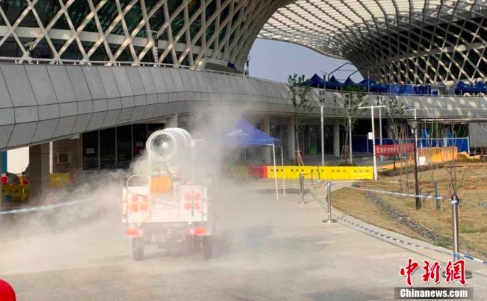 江夏方艙醫(yī)院正在進(jìn)行休艙前的消殺工作。