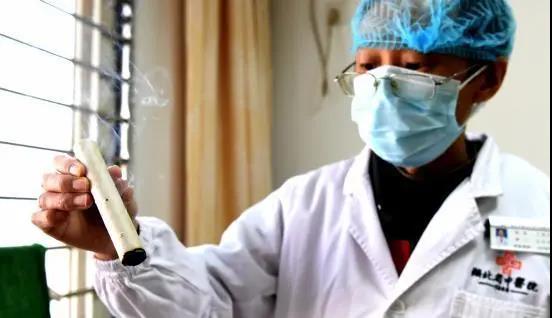 湖北省中醫院醫護人員在康復門診展示即將用于患者治療的灸條。