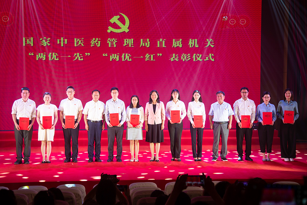 為深入學習貫徹習近平總書記在慶祝中國共產黨成立100周年大會上的重要講話精神,熱烈慶祝中國共產黨成立100周年,7月5日,國家中醫藥管理局舉辦“頌歌獻給黨”文藝展演暨表彰活動,向黨的百年華誕獻禮。國家衛生健康委黨組成員、國家中醫藥管理局黨組書記余艷紅,局黨組成員、副局長閆樹江、秦懷金出席,向已獲頒“光榮在黨50年”紀念章的黨員代表頒發紀念章,向國家中醫藥管理局“模范司辦”“模范單位”、國家中醫藥管理局直屬機關“兩優一先”“兩優一紅”先進個人和集體代表頒發證書。