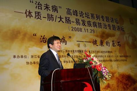 2008年11月29日,由國家中醫藥管理局、浙江省衛生廳和浙江省中醫藥管理局共同主辦的“治未病”高峰論壇系列專題講壇—“體質-肺/大腸-易發疾病群防治專題講壇”在杭州成功舉辦。 衛生部副部長、國家中醫藥管理局局長王國強發表了主旨講話。浙江省政府副省長鄭繼偉、總后衛生部副部長袁永林參加本次講壇啟動儀式并致辭。浙江省衛生廳廳長楊敬就浙江省“治未病”工作的有關進展和成效作了主題發言。中國科學院院士陳凱先、全國著名老中醫何任及有關專家,就治未病與醫學目的調整和醫學模式的改變,體質臟腑功能與人得健康狀態,個體人的健康狀態分類與風險管理及其在健康管理中的應用,KY3H健康保障服務等作了專題宣講。來自中國科學院、浙江中醫藥大學、上海中醫藥大學、浙江省中醫院、杭州師范大學及上海岳陽中西醫結合醫院等單位的專家,就肺與大腸易發疾病的本質與演變規律,肺癌、哮喘、慢性阻塞性肺炎、過敏性鼻炎、銀屑病等肺與大腸易發疾病防治的KY3H健康保障服務作了專題講座。同時,還就KY3H治未病中心的服務模式、健康醫院的建設實踐、治未病健康保障服務的推廣、管理個體人健康狀態風險的服務產品等作了專題發言。講壇還設立了現場展覽、演示和體驗活動,通過音像、文字、圖片資料以及實物等,使參加者了解 “治未病”背景與工作進展、相關科學研究和服務實踐成果、“治未病”的技術與產品等。 本期"講壇"由浙江省中醫院、中國中醫藥科技開發交流中心和昆侖健康保險公司、炎黃健康科技公司共同承辦,中華醫學會健康管理學分會、中華中醫藥學會、杭州師范大學醫學院、解放軍杭州療養院共同協辦。來自全國“治未病”試點單位及浙江省的醫療單位、高等院校、研究院所、健康管理機構、有關企事業單位、社會團體、功能社區等方面的有關人員,中央及浙江有關媒體的記者等共計300余人參加了本次講壇。(科技司)