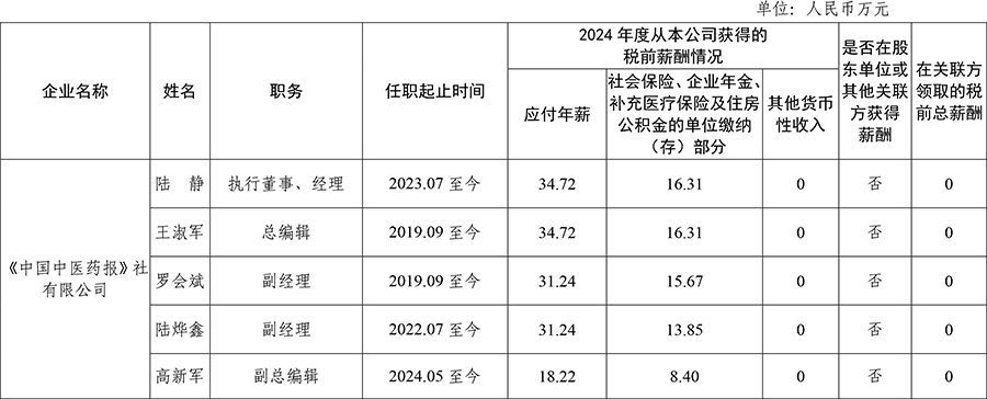 2024年國家中醫藥管理局所監管企業負責人薪酬信息披露