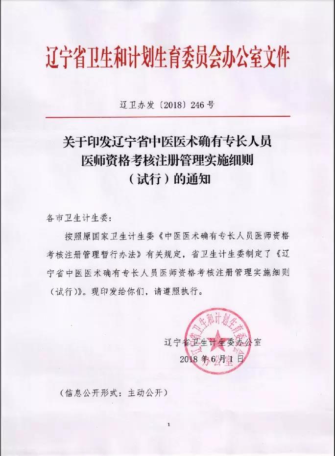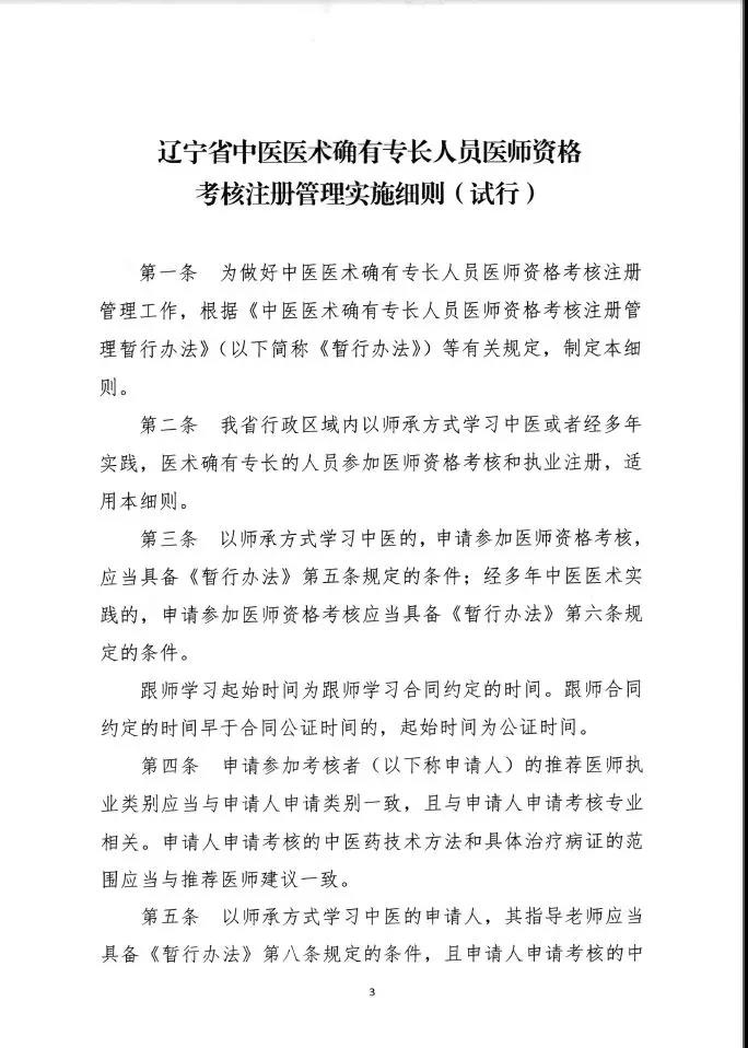 以下是《遼寧省中醫醫術確有專長人員醫師資格考核注冊管理實施細則(試行)》全文