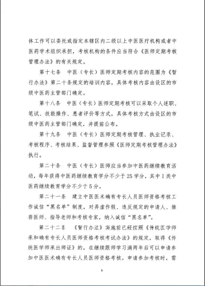 《細則》指出,市級中醫藥管理部門負責中醫(專長)醫師的定期考核,每兩年為一個周期,具體工作可以委托或指定轄區內二級以上中醫醫療機構或中醫藥學術組織承擔。中醫(專長)醫師定期考核管理、執業記錄、考核程序、考核結果、監督管理參照《醫師定期考核管理辦法》執行。
