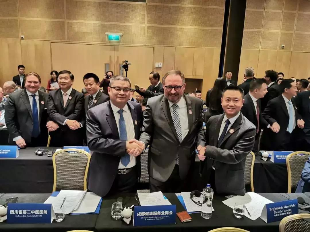 在彭清華、博文斯見證下,四川省第二中醫醫院、成都市健康服務業商會、荷蘭馬斯特里赫特生命科學園共同簽署了關于合作共建“中國(四川)——荷蘭中醫藥中心”框架協議。四川省中醫藥管理局黨組書記、局長田興軍率四川中醫藥代表團參加此次活動。