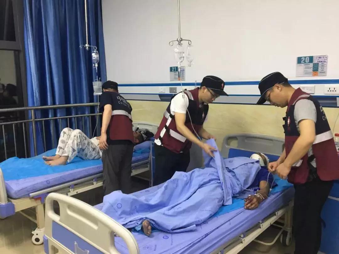 03:53 ,救援隊到達長寧縣中醫(yī)院,救援人員到病房查看了解傷員情況。