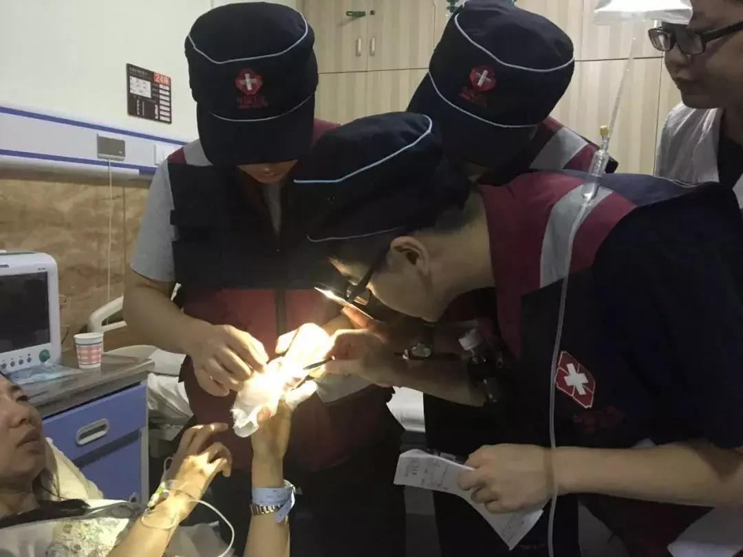 05:30到達宜賓市第二人民醫(yī)院長寧安寧分院,消毒、清創(chuàng)、包扎、小夾板等,為14名傷員進行了診治。