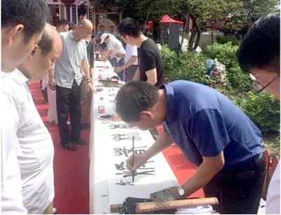 圖為河南省南陽市醫圣祠現場,書法家現場書寫中醫藥書法作品。