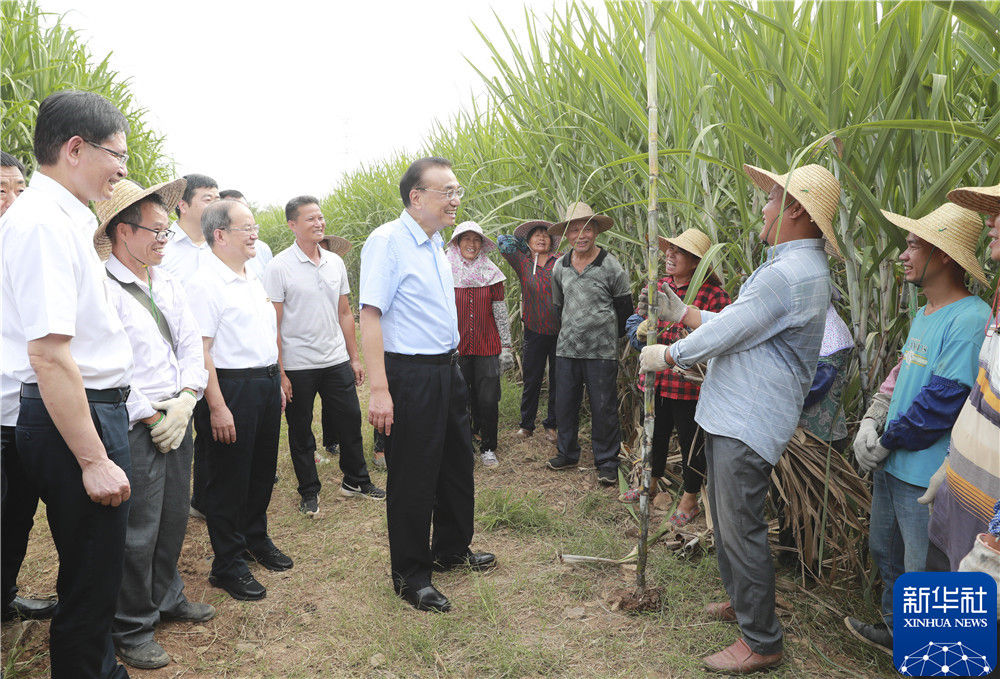 9月16日至18日,中共中央政治局常委、國務院總理李克強在廣西玉林、南寧考察。這是9月16日,在陸川縣東西村,李克強走進甘蔗田與蔗農交談。新華社記者 丁林 攝