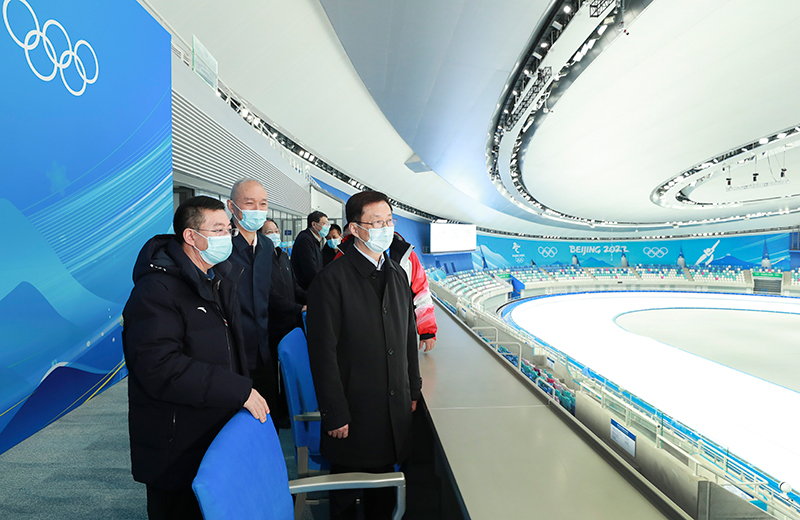 韓正在有“冰絲帶”之稱的國(guó)家速滑館,觀看了“相約北京”系列測(cè)試賽匯報(bào)視頻,并聽(tīng)取場(chǎng)館建設(shè)、賽事籌備、場(chǎng)館制冰等情況匯報(bào)。到國(guó)家體育館,了解場(chǎng)館布局、功能分區(qū)、疫情防控等情況,察看冰球比賽場(chǎng)地、運(yùn)動(dòng)員更衣室設(shè)施情況。在國(guó)家游泳中心,聽(tīng)取“水冰轉(zhuǎn)換”和場(chǎng)館改造、奧林匹克大家庭接待、賽時(shí)場(chǎng)館景觀設(shè)置等情況匯報(bào),實(shí)地考察冰壺比賽項(xiàng)目,與工作人員親切交流。韓正表示,北京冬奧會(huì)、冬殘奧會(huì)籌辦工作已經(jīng)進(jìn)入關(guān)鍵時(shí)期,要按規(guī)劃高質(zhì)量完成場(chǎng)館及配套設(shè)施建設(shè),扎實(shí)做好場(chǎng)館運(yùn)行工作,為賽事順利舉辦提供有力支撐。要認(rèn)真研究冬奧場(chǎng)館賽后利用,把舉辦重大賽事同服務(wù)全民健身結(jié)合起來(lái),推動(dòng)冰雪運(yùn)動(dòng)普及發(fā)展。