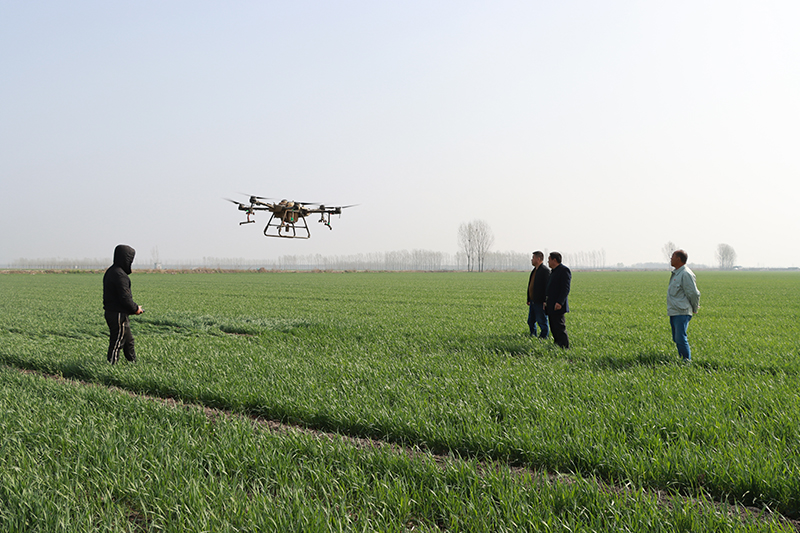 這是山東汶上縣苑莊鎮(zhèn)道立種植農(nóng)民專業(yè)合作社社員用農(nóng)用無人機(jī)噴灑農(nóng)藥(3月24日攝)。新華社發(fā)(劉娜 攝)