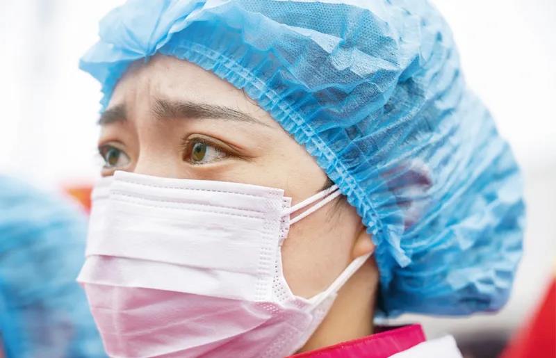 2020年3月29日,在武漢雷神山醫(yī)院舉行的集中撤離儀式上,來自大連醫(yī)科大學附屬第一醫(yī)院的護士熱淚盈眶。當日,武漢雷神山醫(yī)院舉行首批外省醫(yī)療隊集中撤離儀式,送別即將踏上歸途的遼寧、上海、吉林、廣東、山西、河北醫(yī)療隊的1090名醫(yī)護人員。新華社記者 才揚/攝