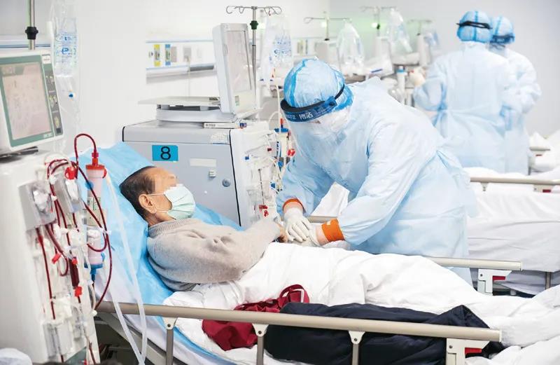2020年3月21日,在武漢市漢口醫(yī)院腎內科血液透析室,醫(yī)護人員為處于新冠肺炎康復期的尿毒癥患者做血液透析。新華社記者 才揚/攝
