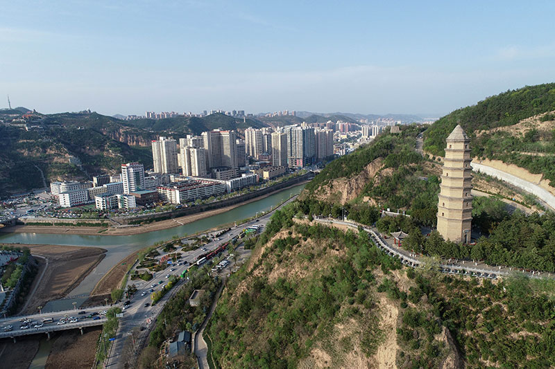 這是4月22日拍攝的延安市寶塔山(無人機(jī)照片)。新華社記者 張博文 攝
