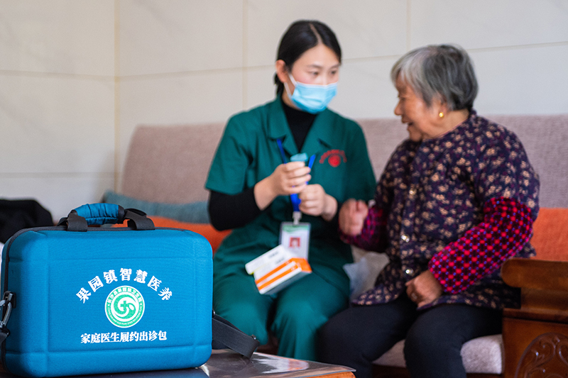 11月12日,在湖南省長沙市長沙縣果園鎮楊泗廟社區,醫務人員劉敏指導居家老人用藥。新華社記者 陳思汗 攝